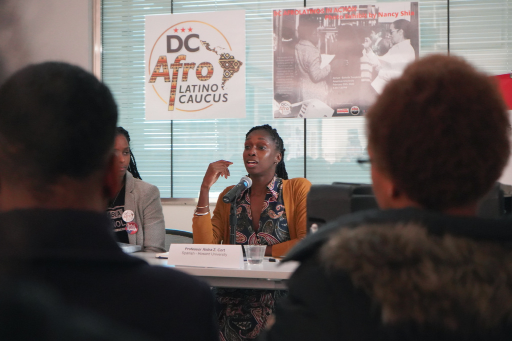 In celebration of Black History Month, the DC Afro-Latino Caucus, Trabajadores Unidos de Washington, DC and the Humanities Truck organized the panel DC Afro-Latinos in Action. The event took place at American University. The panelists were activist and educator Rosalyn Lake, from Seed School of Washington; Howard University professor of Spanish Aisha Cort, and American University Cultural Anthropology professor Arvenita Washington Cherry. The moderator was long time national activist Roland Roebuck. Within the audience, we were pleased to welcome DC community activists, officials from the DC government, students, and AU staff and faculty.